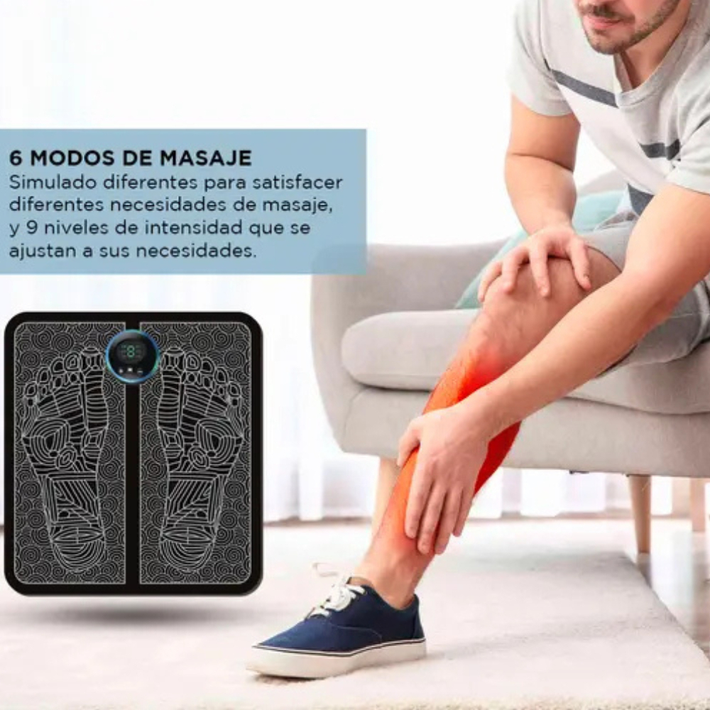 ¡Nuevo Masajeador Para Pies!Realiza un masaje inteligente EMS, que estimula directamente los puntos de acupuntura para aliviar fundamentalmente el dolor y reducir la fatiga.Tiene 6 modos de masaje simulado diferentes para satisfacer diferentes necesidades de masaje, y 9 niveles de intensidad que se ajustan a sus necesidades.El masajeador tiene un sistema de captura inteligente de puntos de acupuntura, adecuada para todo tipo y tamaño de pie.La ventaja del masajeador de pies EMS es que es pequeño y portátil, puedes plegarlo o enrollarlo para llevarlo contigo a donde vayas. Ideal para la oficina, el hogar, llevar en las vacaciones, se puede usar en cualquier momento y en cualquier lugar.