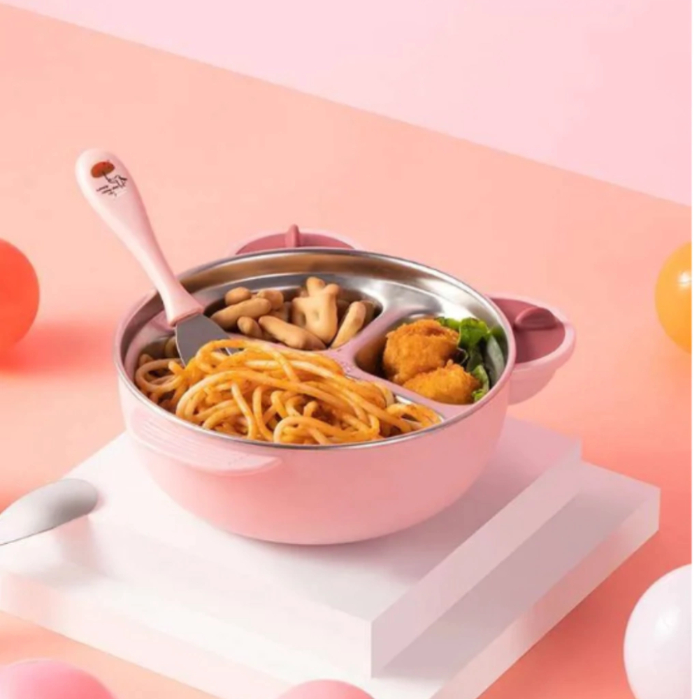 Disfrutá de una comida práctica y cómoda para tu bebé con este plato térmico con tapa y sopapa. Su diseño funcional y seguro lo convierte en una excelente opción para acompañar cada bocado.Características principales:• Conserva la temperatura de los alimentos gracias a su compartimiento para agua caliente o fría, ubicado debajo de las orejitas de silicona.• Base antideslizante con sopapa que mantiene el plato fijo durante su uso. Se despega fácilmente tirando de una de las orejitas.• Incluye tapa con anillo de silicona para evitar derrames y facilitar el transporte.Especificaciones técnicas:• Capacidad: 400 ml• Materiales: acero inoxidable 316, polipropileno (PP) y silicona libre de BPA• Apto para lavavajillasPresentación:Incluye bolsa de tela con tarjetita dedicatoria. Ideal para regalar en baby showers, cumpleaños u ocasiones especiales.Importante: No incluye cuchara ni tenedor.
